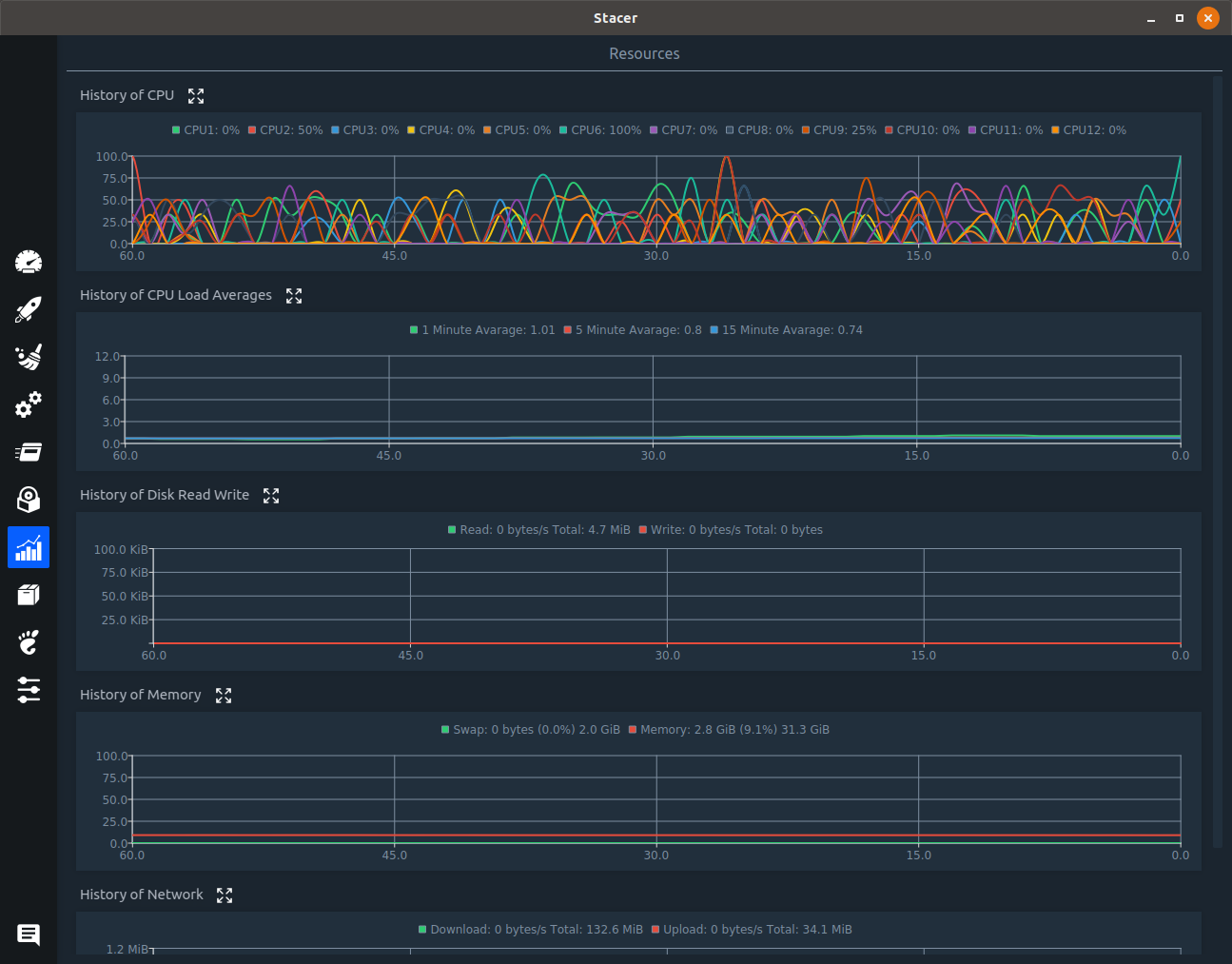 Stacer to keep track of CPU, Memory, Dashboard, a much more aesthetic and performance wise better alternative of its Windows counterpart CCleaner. ๐ฏ โป๏ธ ๐ ๐ด