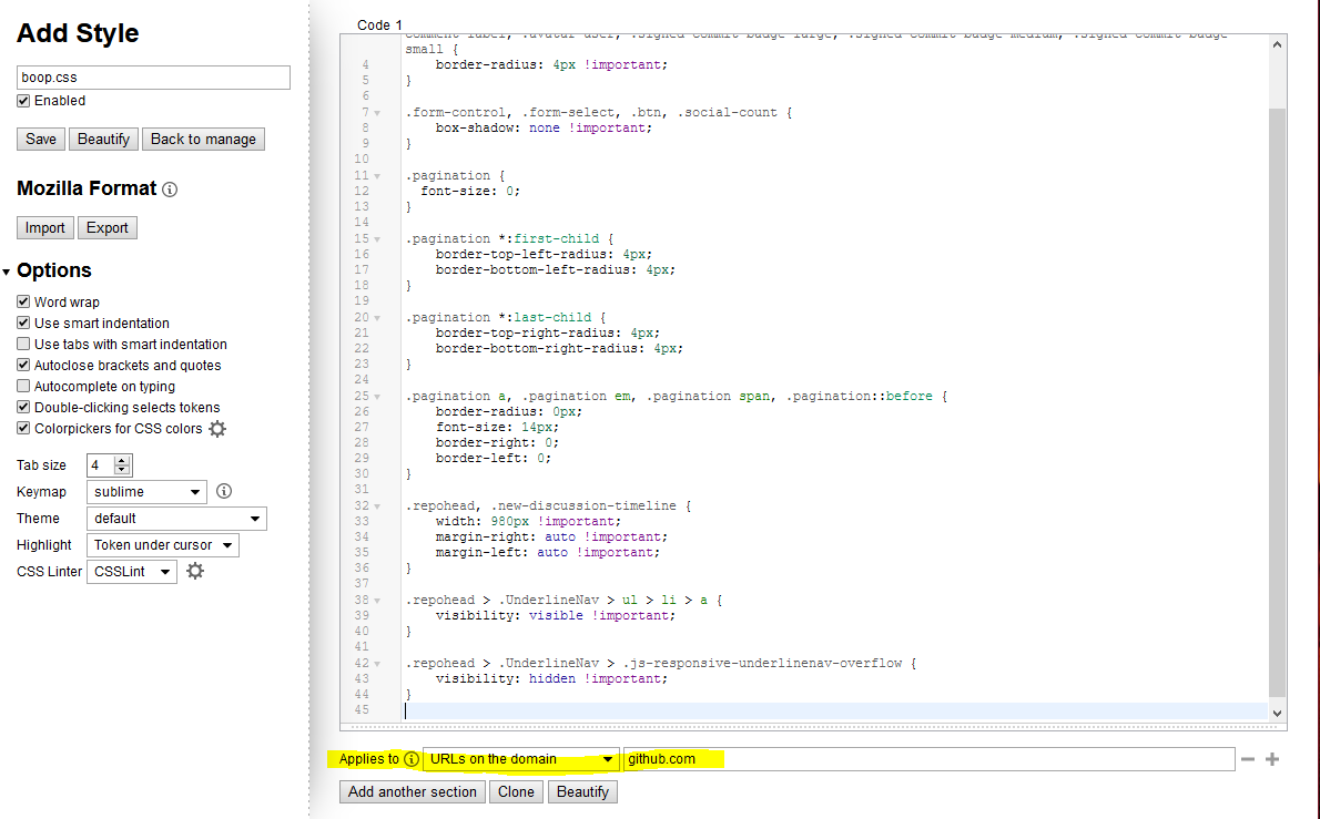 As stated in the description, this is a small CSS snippet which aims to revert a little bit of the new changes made to Github's styling.