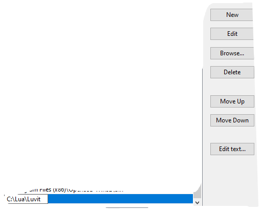 These are the steps to add Luvit (that is luvit, luvi, lit) to your system PATH on Windows. These instructions will be slightly different on old Windows, so in that case you could follow this general guide https://bit.ly/2QfZ8Ii.