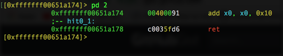 "/c add x0, x0, 0x10; ret"You should get an output like this: - We are going to take the second address at the top(in this example it's