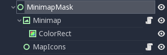 The problem comes when we have to place the icons, the icons (unless they have display rotation on) should rotate independently from the map, so they can't really be children of the rotating TextureRect, which is why they are in a separate node that is a child of the minimap container.
