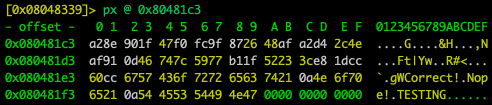 0x080481f6 5445 5354 494e 4700 0000 0000 0000 0000 TESTING.........