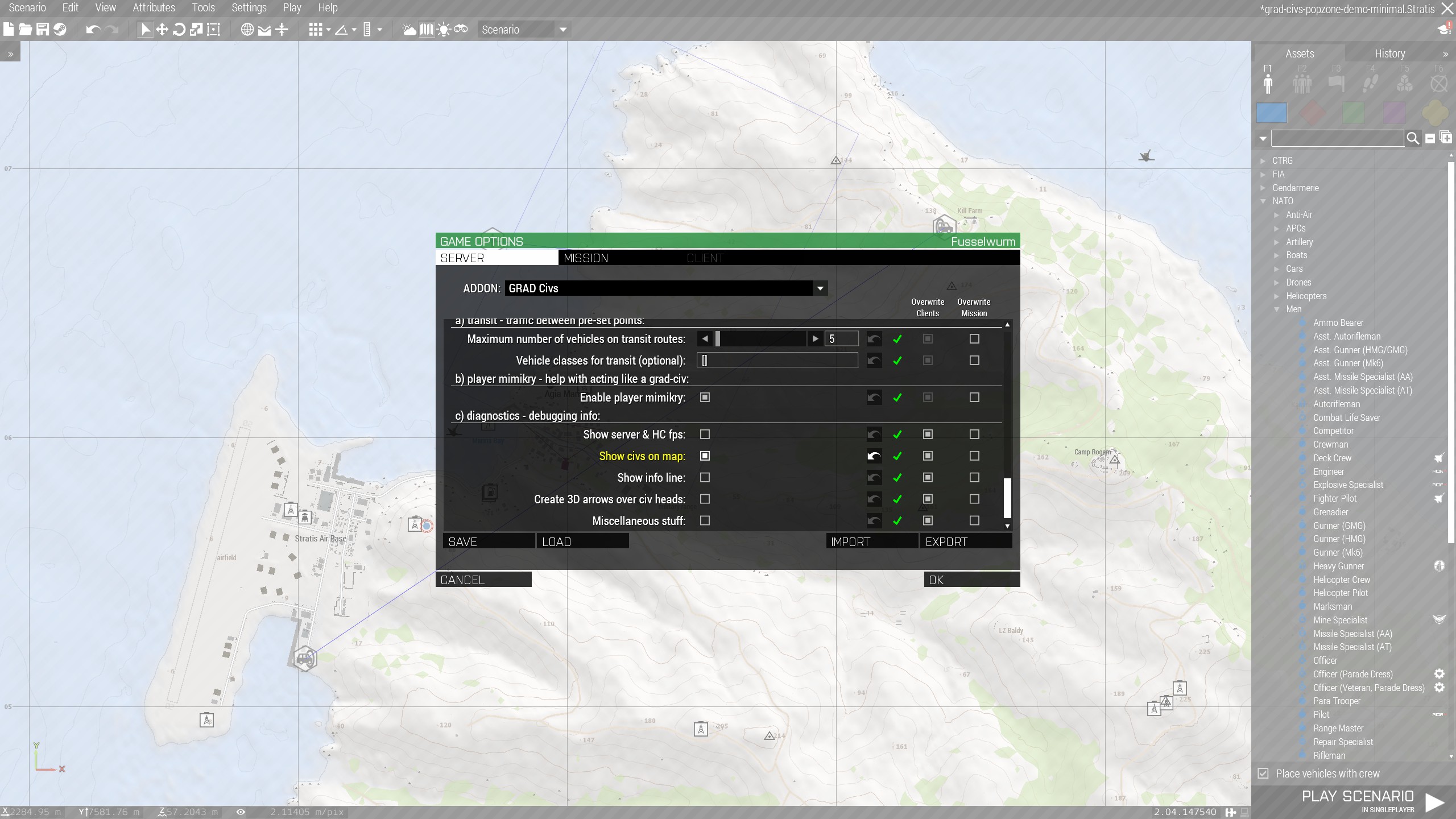 - different types of civilians will only spawn when they're within a certain distance of players (minimum & maximum). look at the settings and see what suits you best.