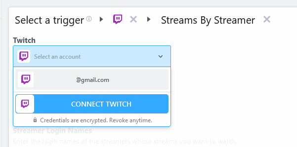- In the triggers box, search for and click on Twitch