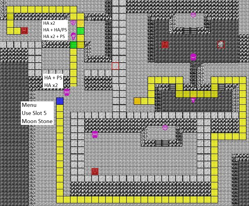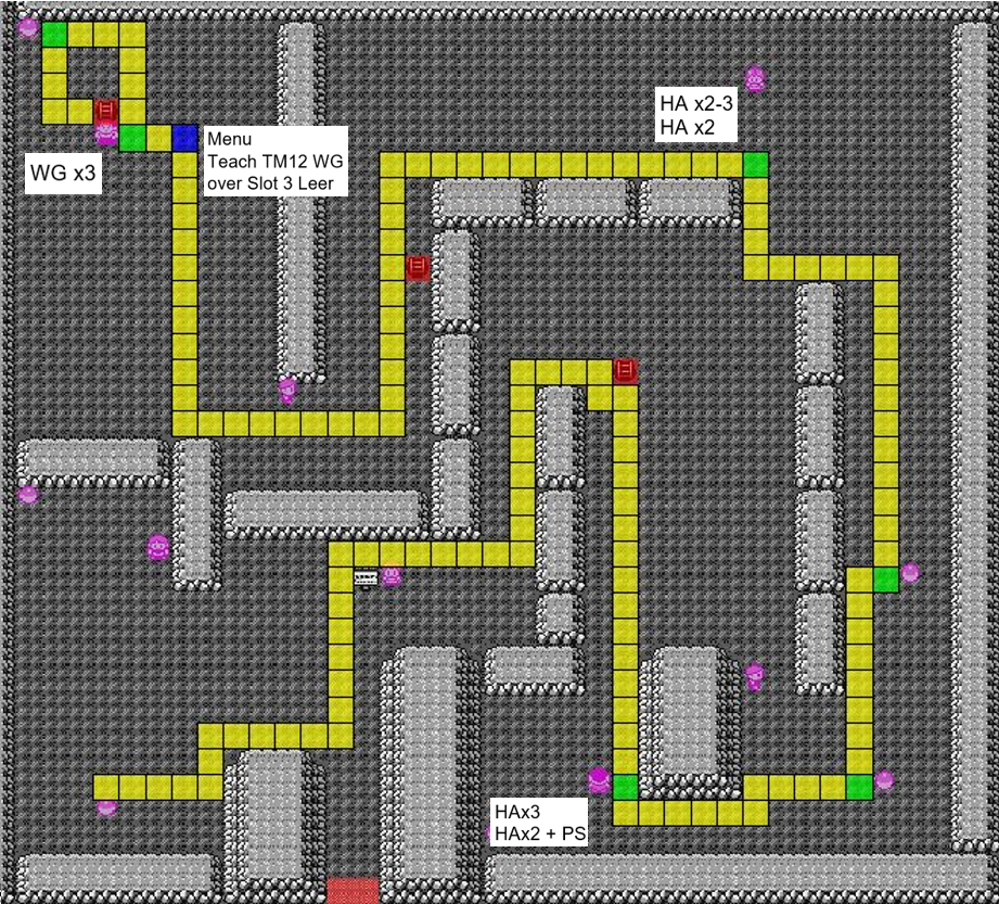 - Moves: HA = Horn Attack, BB = Bubblebeam, WG = Water Gun, TB = Thunderbolt, PS = Poison Sting, HD = Horn Drill, IB = Ice Beam, RS = Rock Slide