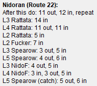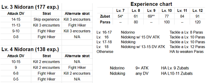 - L17-18 Nidoking → Tackle a L8 or L10 Paras