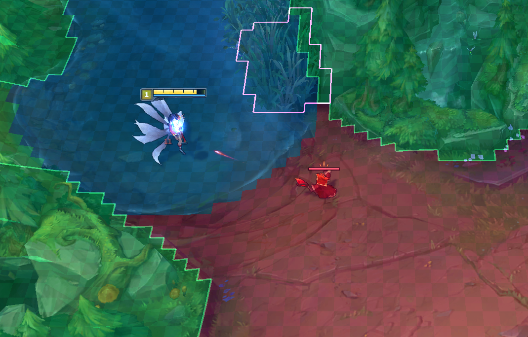 The minion can lock on to Ahri because she’s in an area marked as a lane.