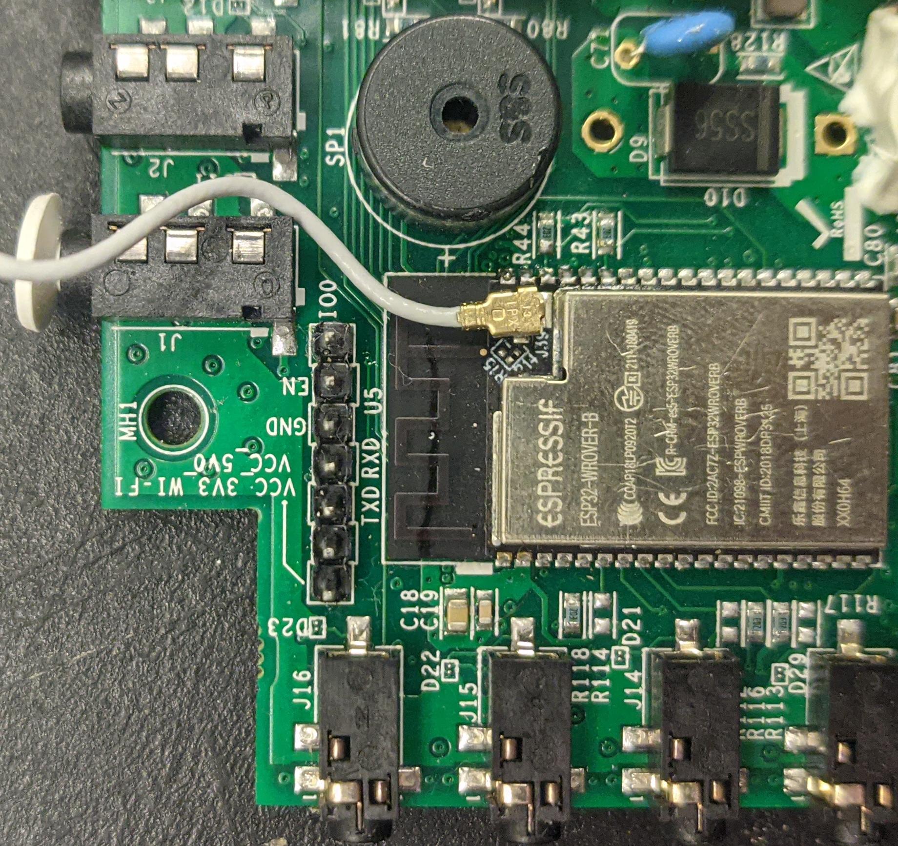Plug in the unmodified end of the cable we modified above into the IO0 pin of the Emporia Vue 2.