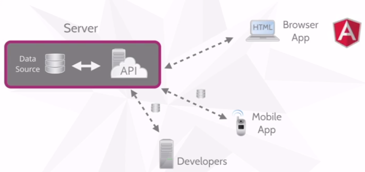 REST (representational state transfer) est un style d'architecture (pattern). Un système qui s'appuie dessus est appelé 'RESTful'. Typiquement, dans le dévelopmment de notre application on fera attention au Separation Of Concerns (SOC) et on séparera le client (qui consulte) au serveur (qui fournit la donnée). Un autre point important est l'aspect 'sans état' (stateless). Chaque requête du client contient toutes les informations nécessaires et ne doit pas dépendre d'une requête précédente. On s'appuyera fortement sur les différentes méthodes HTTP pour expliciter l'action que l'on souhaite. Par exemple pour récupérer la liste des stagiaires de la promotion de Simplon Toulouse, on effectuera en HTTP :