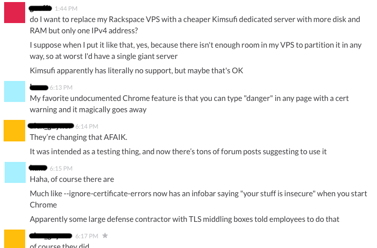 This is a pretty common pattern. It's also something that obviously ought to be handled by the presentation layer--your application code shouldn't care what order the chat messages happen to come in, and you shouldn't have to add wrapper divs and other jiggery-pokery when subsequent messages come in or get deleted and worry about determining whether this "chunk" of messages is interrupted by other chats or not.