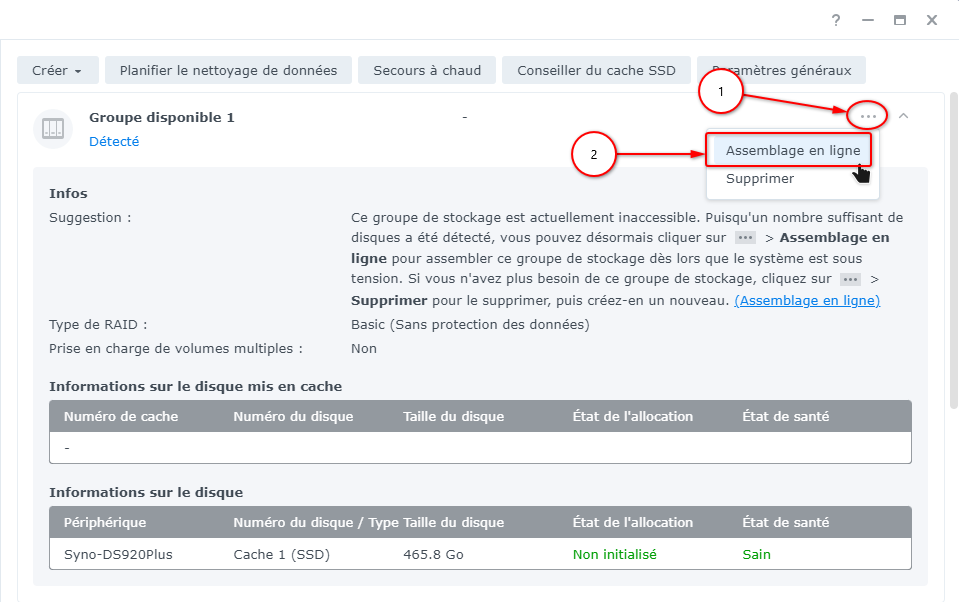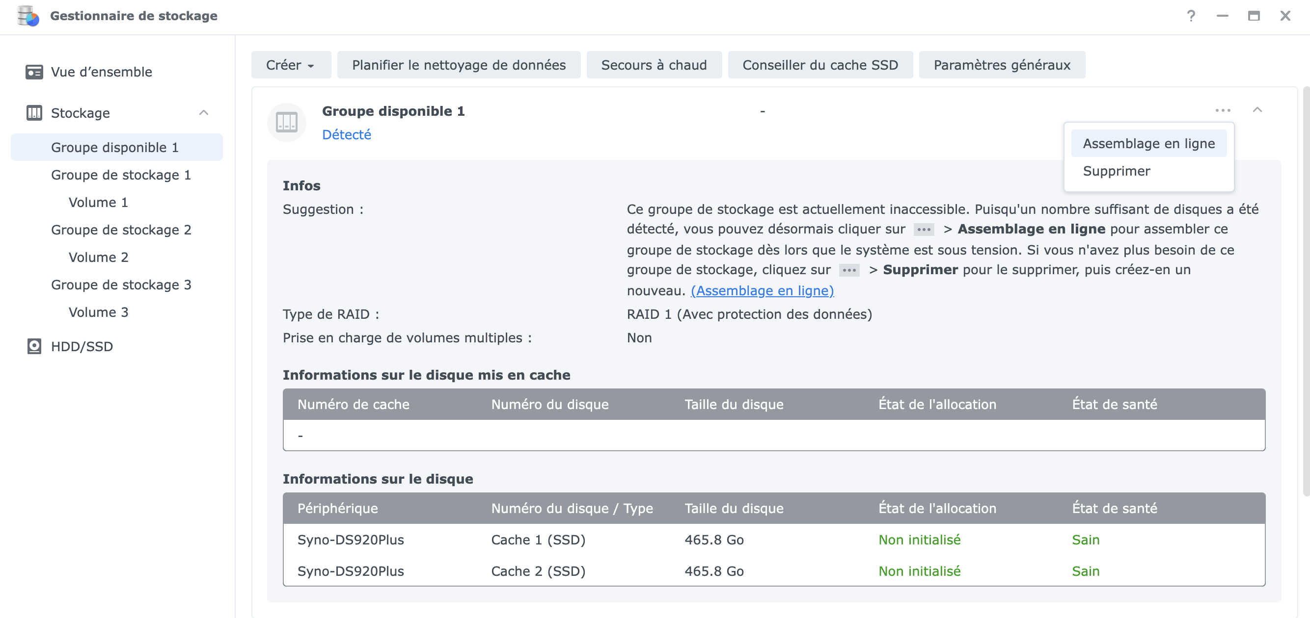 - II. Création de RAID1 avec 2 SSD après avoir fait le groupe BASIC précédent