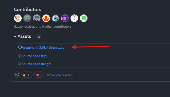 Aseprite-v1.x-Source.zipinto theasepritefolder. -