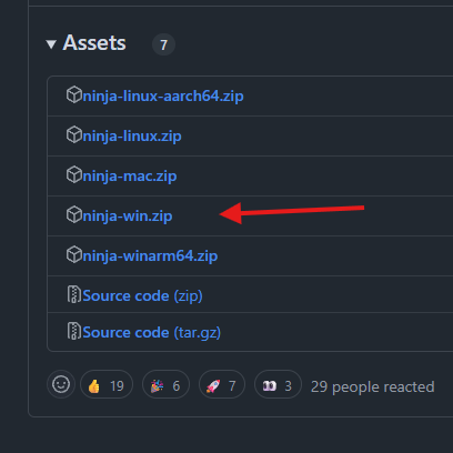 ninja-win.zipand copyninja.exetoC:\Program Files\CMake\bin.
