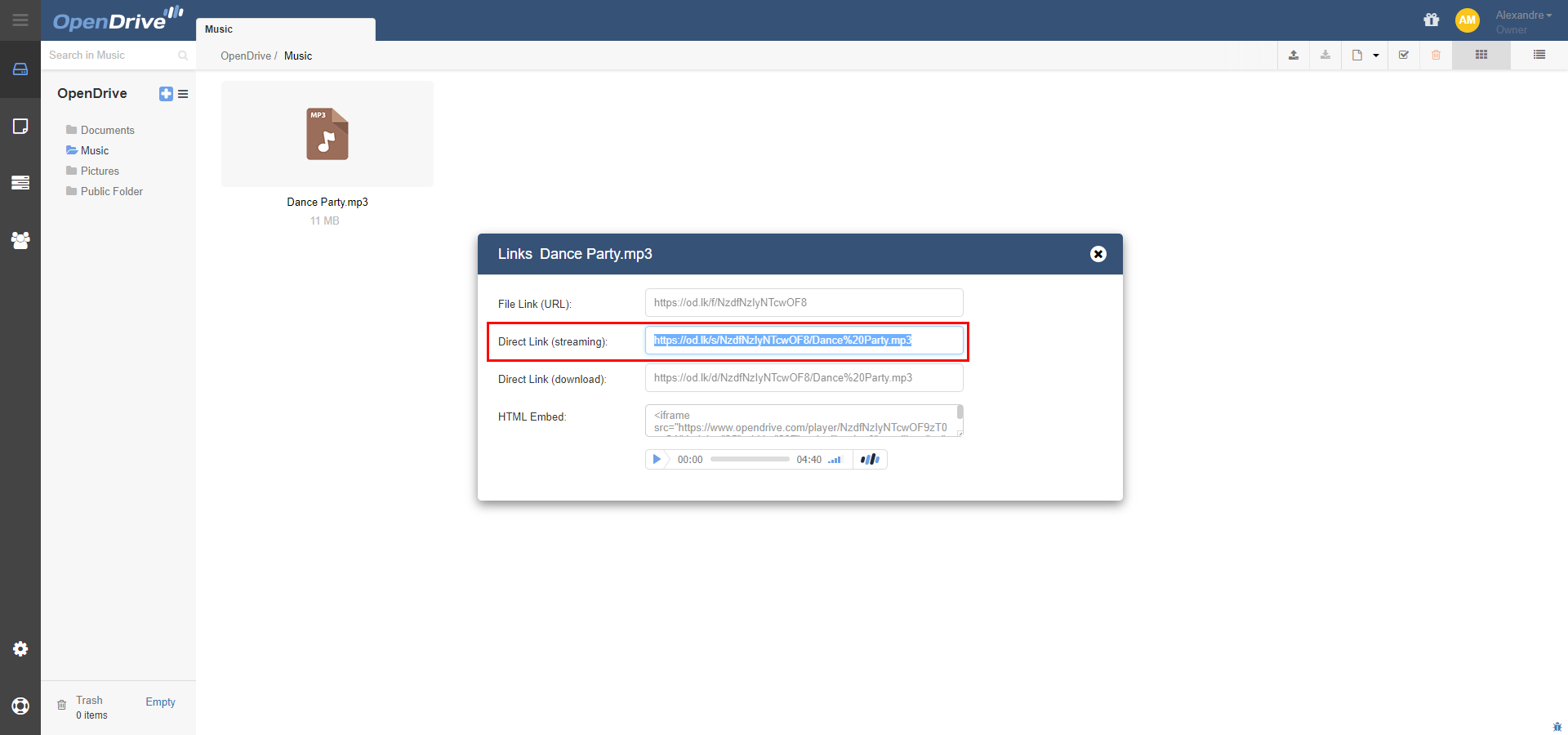 Copy" button next to the music you just uploaded - The direct link should now be copied to your clipboard, paste it anywhere you want