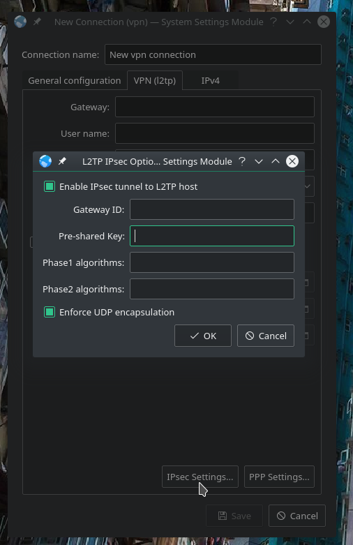 Enable IPsec tunnel to L2TP host - paste PSK to