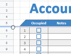 | C | Occupied Dropdown | Used when multiple users share the same spreadsheet, indicates which accounts are occupied (you can add users like this : Select C6:C30 and navigate to Data → Data Validation) |
