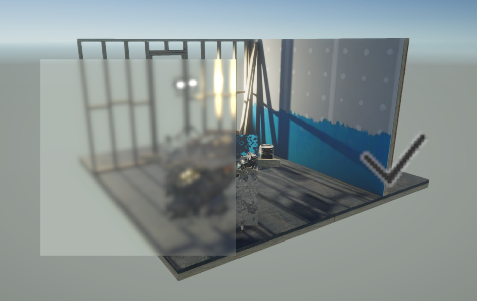 - Anything in the scene under the RawImage should now be blurred, including transparent objects