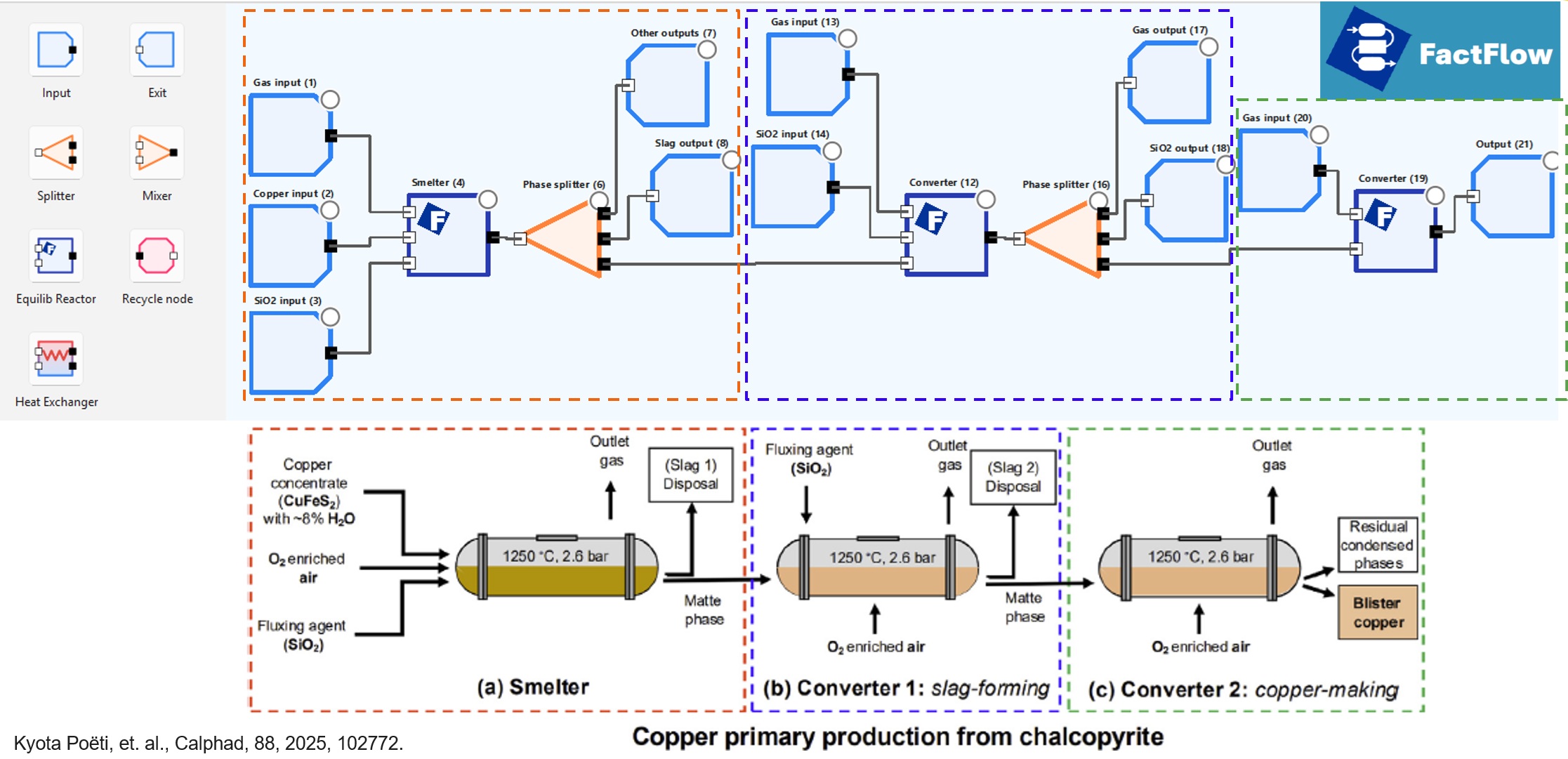 In this blog post, we take the first step toward building an integrated process model for primary copper production in ChemApp for Python. With the release of ChemApp for Python version 8.3.4 [more info], new capabilities now allow us to model complex, multi-step metallurgical flowsheets within a single, integrated framework with significant advantages in terms of flexibility, accuracy, and computational efficiency.