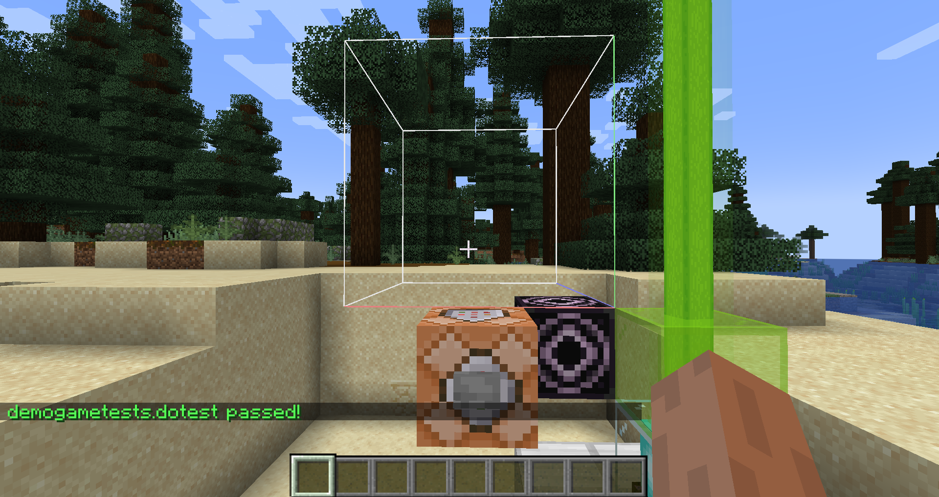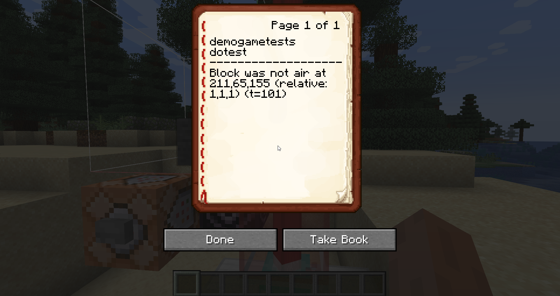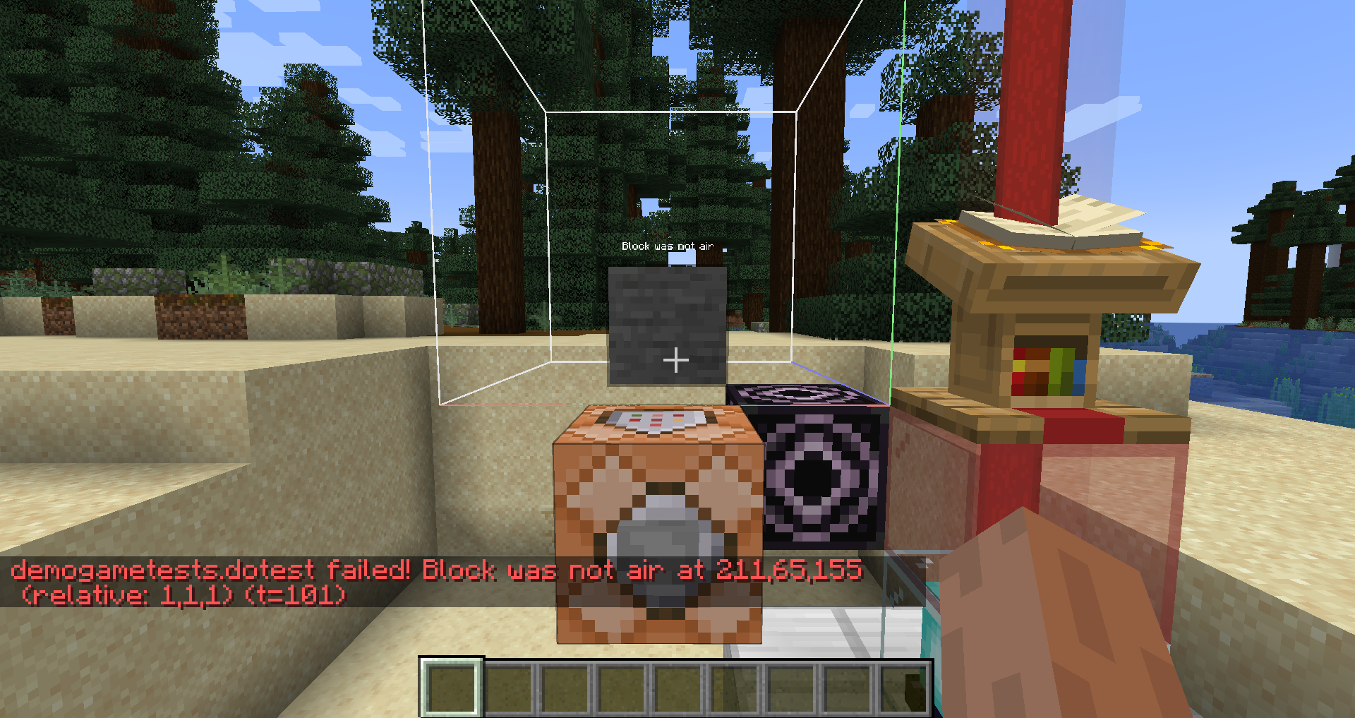 If our template structures correctly contains an air block at (1, 1, 1), the game test will succeed immediately.