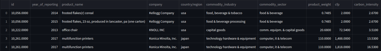 - Browser Dashboard which provides insights on the carbon footprint of different products.