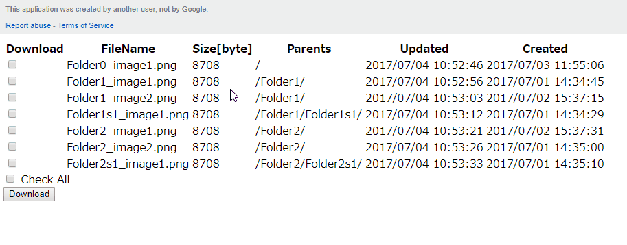 This is a sample script for downloading files from Google Drive under no authorization using browser. By using this sample, you can make other users download files from your Google Drive. Even if the other users are not Google users, they can download the files.