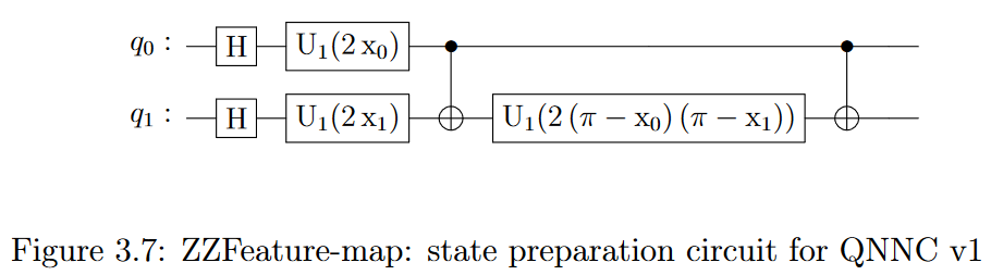 $U_1(2x_0)$ gate to$|q_0\rangle$ and$U_1(2x_1)$ gate to$|q_1\rangle$ . - Apply a