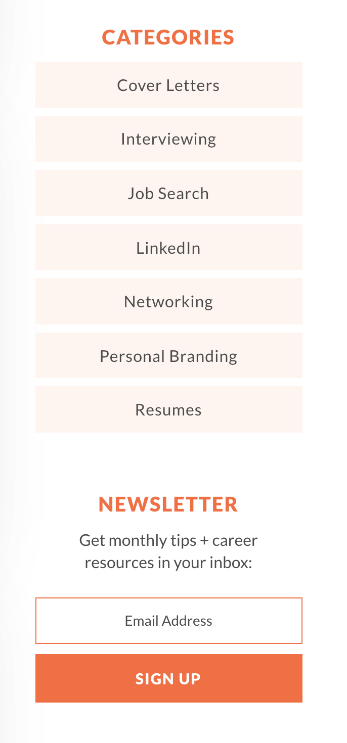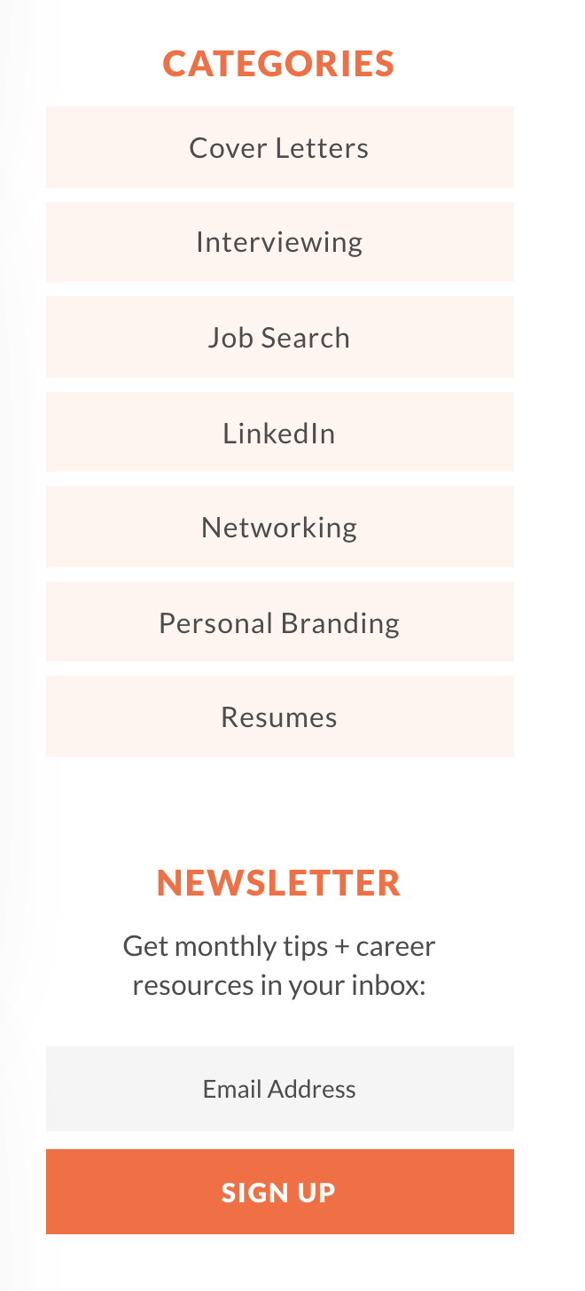 - make the "CONTACT US" call to action more redundant. For example, each section, like "RESUME WRITING & BRAND DEVELOPMENT", could have a "Contact us to get started" text link at the bottom.