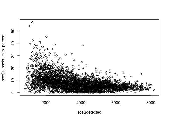 sce <- addPerCellQC(sce, subsets = list(mito = grepl("^mt-", rownames(sce))))