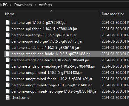 baritone-standalone-fabric-x.xx.x-x-xxxxxxxxxx.jar - Drag and drop (or copy and paste) the file into your mods folder