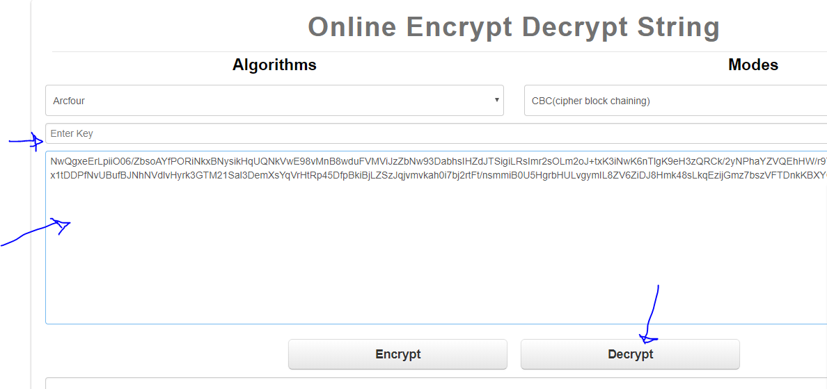 You can use this website to decrypt them, but for each stop you'll need the key from the previous stop to be able to do it! https://codebeautify.org/encrypt-decrypt (ARC4-40 encryption)