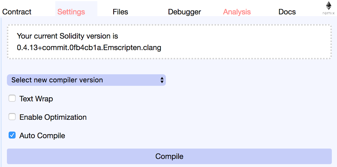 Keep note of the current Solidity version in the compiler. We’ll need that later to verify the contract source.