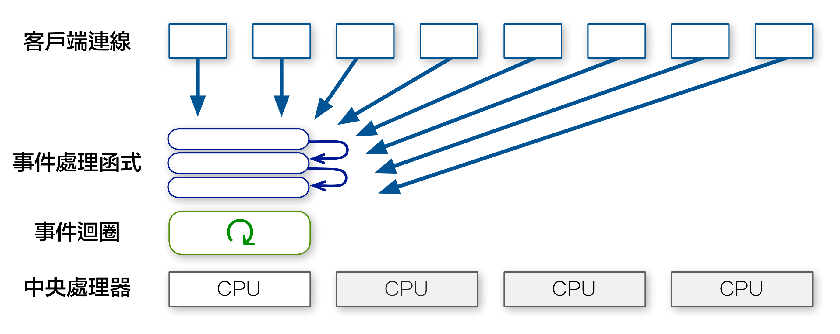 此外,如果叢集裡的每個行程都在忙著處理 CPU 運算,新來的連線仍然會被卡住。