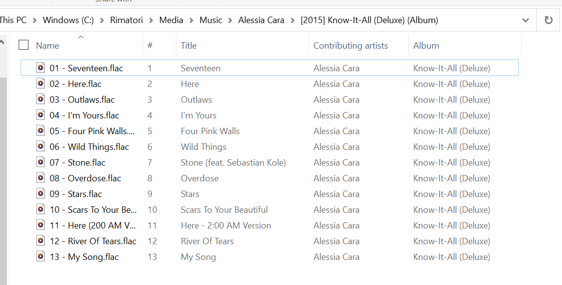 Changed : /music/Alessia Cara/[2015] Know-It-All (Deluxe) (Album)/02 - Here.flac