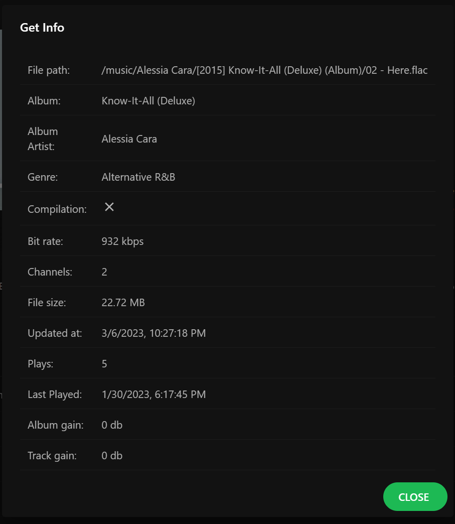 That original file was an 800kbps flac right, I wanted to move the location of this file in the database and replace it with a higher quality file. So I turned off Navidrome and used the script to change the original filepath to