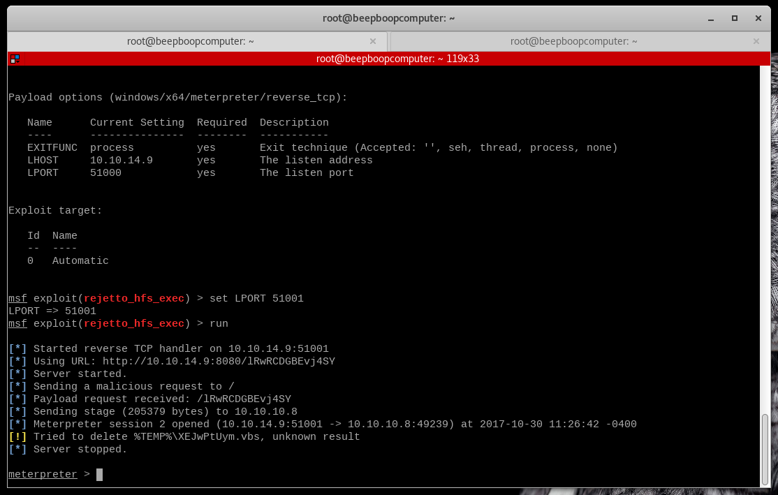 This exploit assumes we want to use the powerful Meterpreter reverse shell as our payload, and since Rejetto runs only on Windows, it will automatically use the Windows version of this payload.