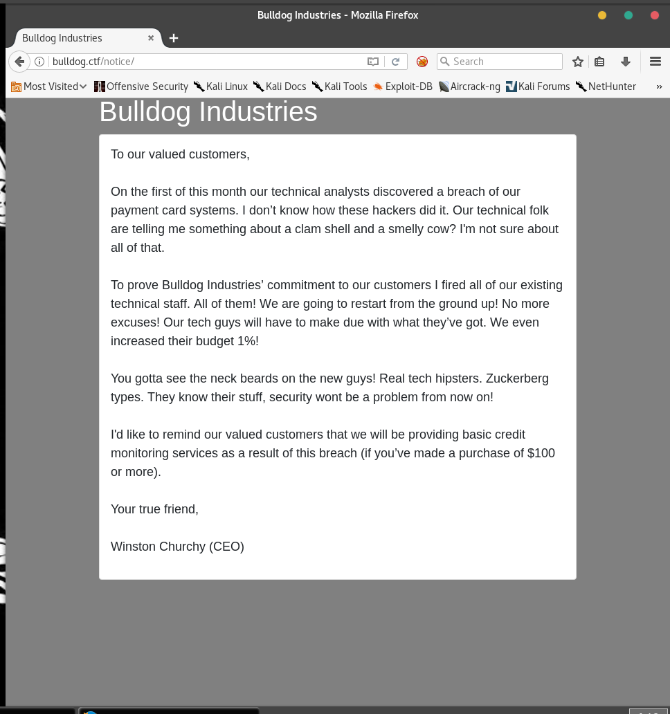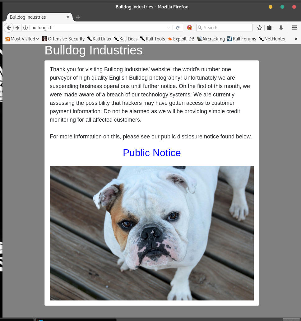 After their hack by the BlackHat German Shepherds, Bulldog Industries has brought us in to find the rest of the vulnerabilities. They will be happy they did!