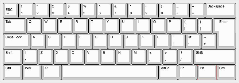L_Win + R_Alt + Spacebar = R_Shift, FN, PN and R_Ctrl as arrow keys.