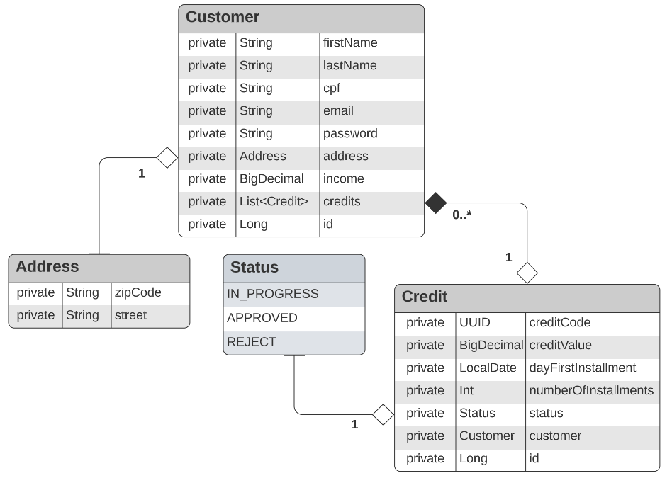 - Response: creditCode, creditValue, numberOfInstallment, status, emailCustomer e incomeCustomer
