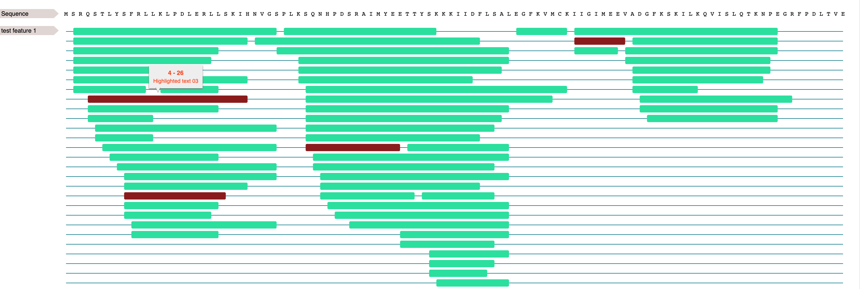 Analyzing positional features/annotations in sequences is important in bioinformatics. Visualizing such data is quite a challenging task, considering the large amount of data to be displayed. The feature viewer is an open source javascript library developed to visualize biological data (referred to as features) mapped to a linear sequence (Paladin et al., 2020). For instance, it can be configured to visualize the location of protein domains or amino acid variations in a protein sequence. The feature viewer is being used in several popular bioinformatics resources such as neXtProt and COSMIC 3D.