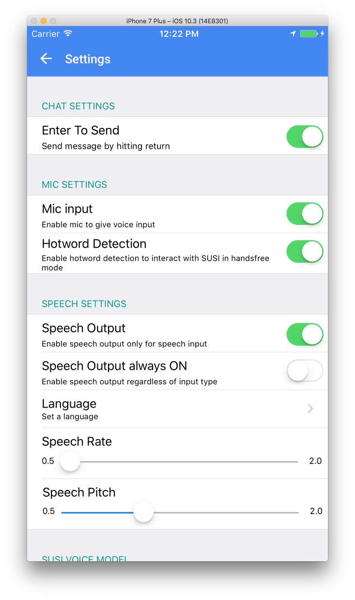 - Project: An iOS app making use of the SUSI.AI Server functionalities