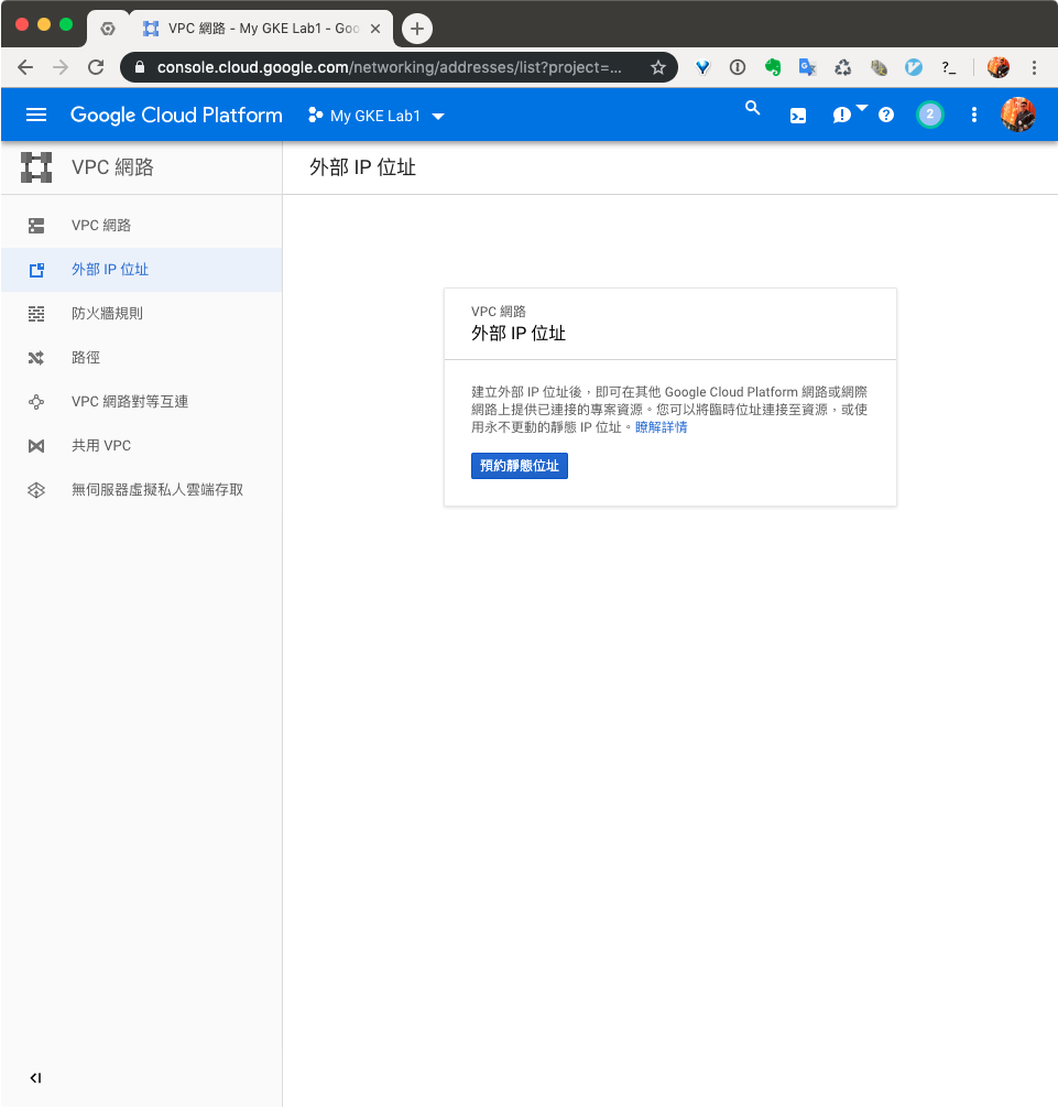 因 GKE 需要點時間進行安裝,故在 LAB 1.0 之前,先至 GCP 進行 setup 的動作。