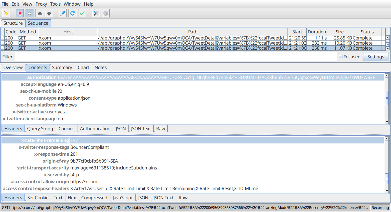 | 5) 8IS8MaO-2EN6GZZZb8jF0g/UserWithProfileTweetsAndRepliesQueryV2 12) iTpgCtbdxrsJfyx0cFjHqg/ListByRestId 19) wfglZEC0MRgBdxMa_1a5YQ/Retweeters | |