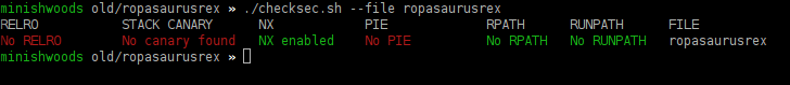 Let's check what protections are on the binary. We know our machine runs with ASLR (and if your's doesn't why not!?!?)