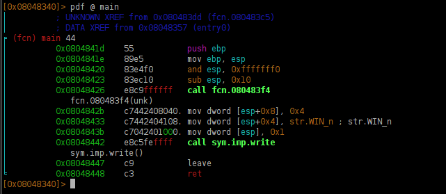 pd directive. So let's disassemble the main function with pdf @ main