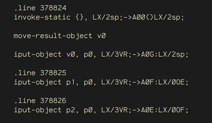 Now I had to come up with the smali code to send an intent to the Whatsapp Stalker. Again, I am not very knowleadgeable on smali, and I really wanted to get it to work without too much trial and error, so I decided to cheat a little bit: I just wrote the normal Java code to send an intent in an empty app, then compiled it, decompiled my own app with apktool, and just copy pasted the relevant smali code.