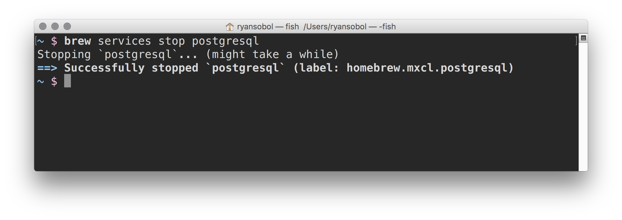 brew services stop postgresqlAnd you should see something like this.