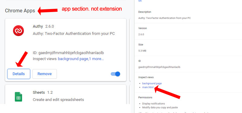 - Install Authy APP from Chrome Web Store Thi is the App, not the extension.