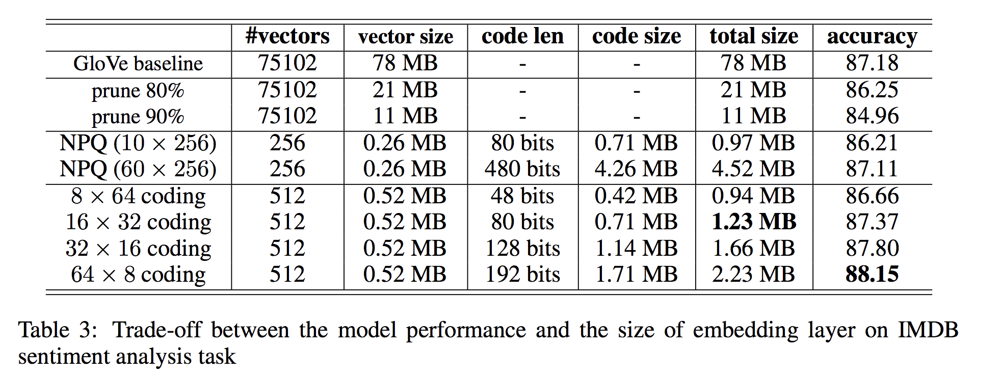 3. 面對的困難是:盡可能再壓縮的時候不要損害performance,本文用sentiment analysis和machine translation作為evaluation