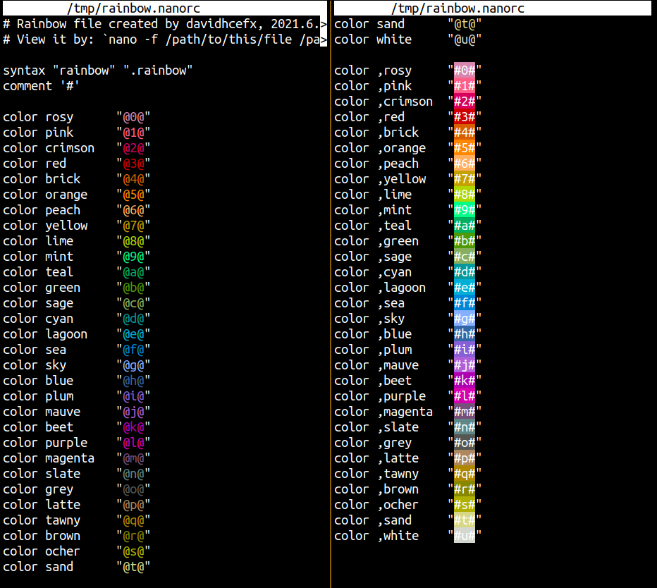 An overview of 256 color supported by nano config file.