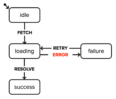 FETCH,ERROR,RESOLVE,RETRY) - An initial state (e.g.,